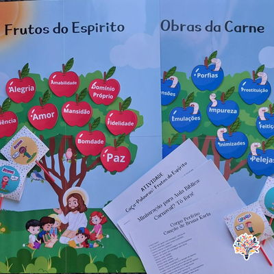 Vocês são parte fundamental na formação espiritual das nossas crianças! Pensando nisso, preparamos recursos especiais e criativos sobre o tema "Fruto do Espírito" 🍇✨